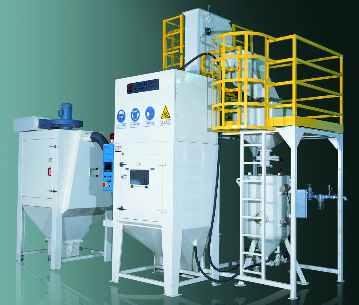 其中ρA表示空氣的密度。 (v22-v12)的值非常大,可以預測(p1– p2)的值也會非常大。 丸料輸送管道中的速度v1足夠把丸料“拖拽”到噴嘴中。同時壓縮空氣的紊流狀態便于更好地把丸料和空氣混合在一起。